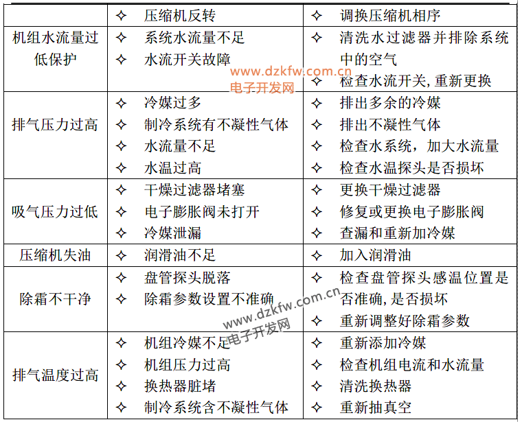 | 電路板故障 | 電路板冷水補(bǔ)充輸出點(diǎn)無 輸出 |
